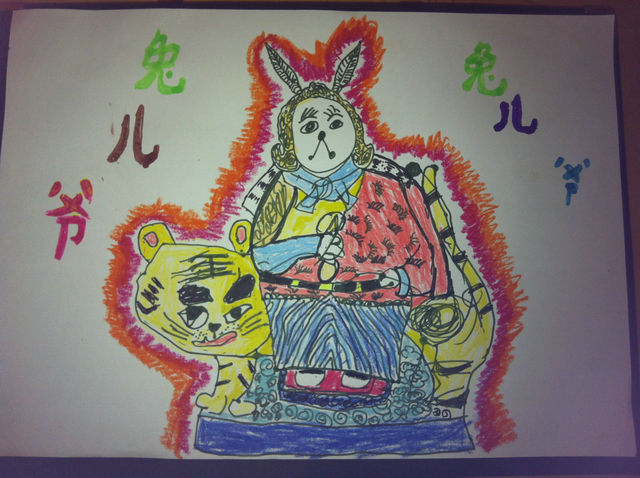 孩子挺多的,老师穿插在几个学生之间,这个指点一下,那个指点一下。孩子们画得也挺快的,不到两个小时班上几个同学就先后完成了作品。