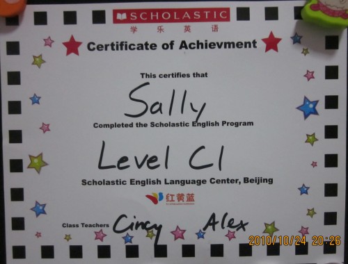 毕业课,老师带着她们以游戏的方式复习了这学期学的句型、单词,最后发了毕业证,照了毕业照。多多在课上表现的挺热情,做游戏也挺积极,也能正确地回答老师的提问,老师夸奖多多回答问题时的声音是全班最洪亮的。不过,我也看出来了,她还是有的时候走点神……
