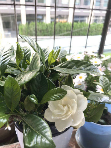 后来又买了桅子花、迷你玫瑰,现在窗外俨然是一个小花园了。
