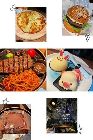 双人餐包括一道前菜,一道主食,然后有蔬菜沙拉、炸鸡、饮料、甜点等,我还点了一个榴莲披萨,一个漏奶滑。其实对于我们饭量小的,这些足够吃了。多多又点了一个迷你汉堡,一份鳕鱼。结果我们四个人,原套餐里的汉堡和后点的迷你汉堡都没吃,打包带回家了。