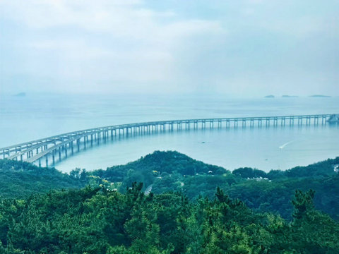 往山下走,天也渐渐晴了。远眺跨海大桥,颇为壮观。