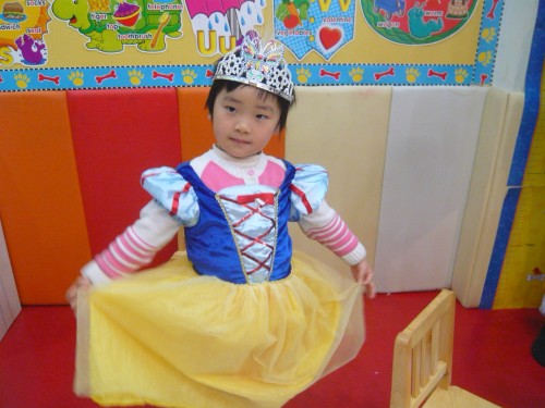 上周英语课的时候,老师通知这次课上要有万圣节的活动,希望家长能给孩子装扮一下。想了想,还是觉得给多多装扮成小公主。在网上找了一些,那些公主裙什么的都好贵,也就放弃再买新的裙子了。家里还有一件去年买的白雪公主裙子,因为那个裙子上的金粉总是掉,一直也没有给多多穿过,这次就将就穿吧!姥姥上次送给多多一顶“皇冠”,现在也正派上了用场。