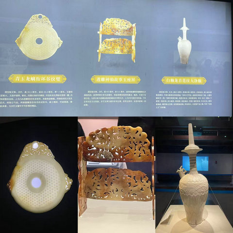 定州博物馆为国家重点博物馆,现有馆藏文物5万余件,国宝级文物3件,珍贵文物965件,以汉代和宋代为主。三件国宝级文物:“青玉龙螭衔环谷纹壁”做工精良,玲珑剔透,雍容典雅; “透雕神仙故事玉座屏”是迄今所见最早,且为汉代玉器中唯一的一件玉座屏。有“定瓷之王”美誉的白釉龙首莲纹大净瓶,高60.5厘米,器型修长秀雅,纹饰精细流畅。