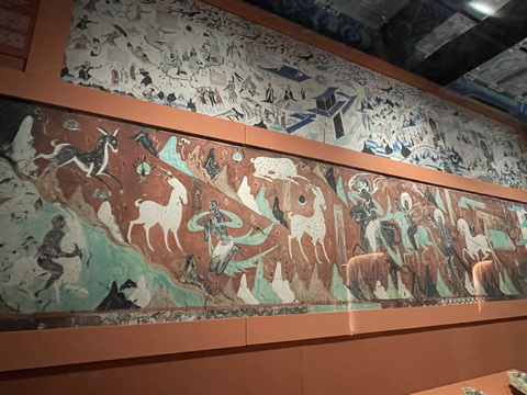 看完了复制窟,我们又去看特展。飞天、九色鹿、舍身饲虎图一幅幅美轮美奂的壁画,让人大开眼界,流连忘返,大开眼界。